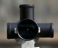 Exit Pupil: Given objectives (front lens elements) of equal size, the more magnification the scope, the smaller the exit pupil. Remember that the exit pupil, a tiny circle of light, must deliver ALL the optical data your eye receives. Bigger is better by far. Too small an exit pupil will make a good scope dim and hard to use. That's why we advise against boosting the Weaver T-36 or the 36X Sightron. With their respective 40mm and 42mm objectives, the exit pupil becomes too small when they are boosted beyond 36x. The photo is a 40x Leupold Competition scope which has a 45mm objective and a 1.13mm exit pupil.